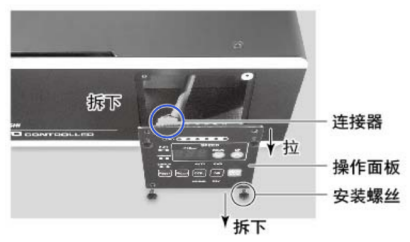 一、1拆下E4000正面操作面板的4個固定螺絲,將操作面板輕輕從控制器中拉出(圖3),拆下操作面板后的連接器。
