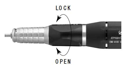 | 打磨筆前端上有標(biāo)注Open(打開)和Lock(鎖緊)。 采用左松右緊,左示意圖。旋轉(zhuǎn)至Open (打開)前 端夾頭會打開,可以裝夾工具。如金剛石打磨頭,各 種橡膠磨頭,各種羊毛頭等其他柄徑3mm 工具。如 需裝夾2.35mm 工具,請更換2.35mm 夾頭。打磨筆 在旋轉(zhuǎn)使用時請勿旋轉(zhuǎn)打開更換工具,這樣會損傷打 磨筆內(nèi)部。 |