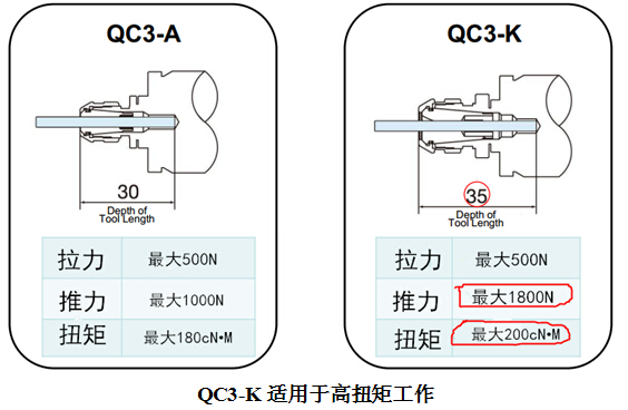 只有QC是杠桿式主軸,使用機(jī)床夾具系統(tǒng)加工中心技術(shù)。
