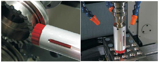 XEBEC銳必克交叉孔去毛刺實(shí)例:機(jī)加工后留下的毛刺厚度在0.2mm以下的細(xì)微毛刺均可去處.最適合于單點(diǎn)式去除交叉孔細(xì)微毛刺.請(qǐng)與手用工具,加工中心,CNC數(shù)控車床,機(jī)械臂配合使用.