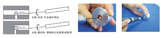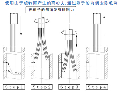 XEBEC銳必克內(nèi)孔去毛刺:可同時(shí)進(jìn)行去毛刺和內(nèi)壁拋光。?務(wù)必保證刷毛部分進(jìn)入孔內(nèi)后,再開始旋轉(zhuǎn),否則刷毛可能會(huì)損壞或分散危險(xiǎn)。