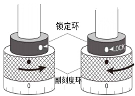 按照圖的箭頭指示 方向旋轉(zhuǎn)鎖定環(huán), 可以設(shè)定扭力值 | 鎖定扭力值后,鎖定環(huán)的白點歸零位置與副 刻度環(huán)的紅點重合就可以固定扭力值。 |