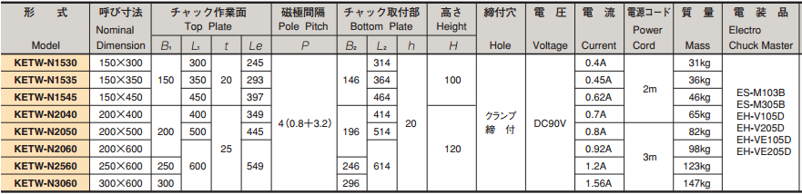 KETW-N1530日本強(qiáng)力電磁吸盤