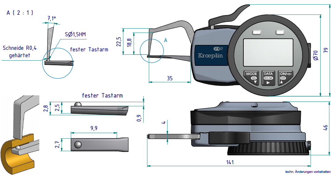 多個數(shù)顯設(shè)定功能: 絕對和相對測量, 上下限超差顯示等