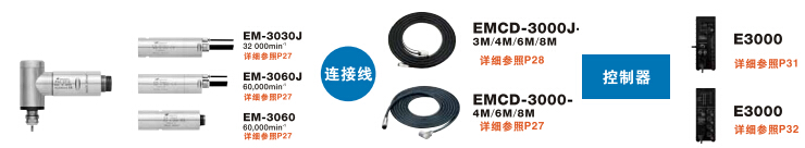• 短小型直角電主軸RA-150E,直徑30mm,入力測旋轉(zhuǎn)速度可達(dá)20000轉(zhuǎn)/min,自帶減速裝置,減速比1/2.67,夾頭采用CH8系列。是E3000系列高速電主軸比較常用的型號。