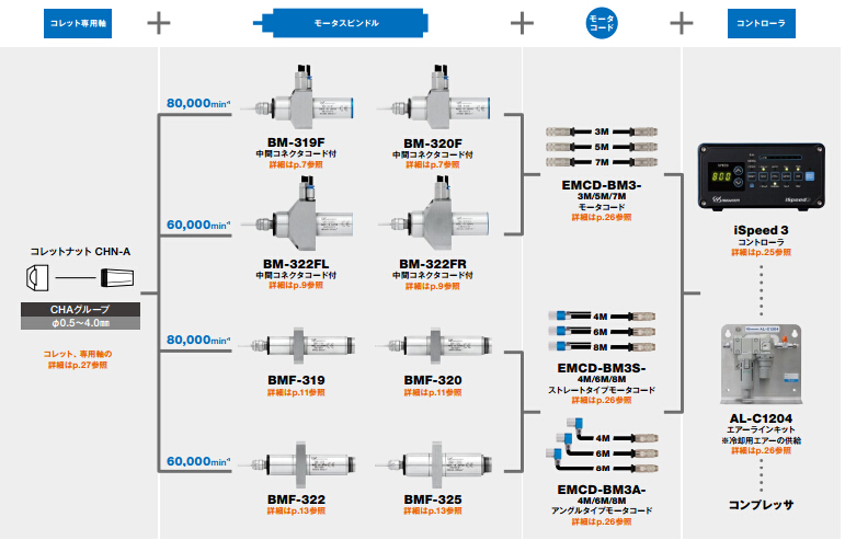 - PCB板切割用NAKANISHI中西5萬轉氣動換刀主軸