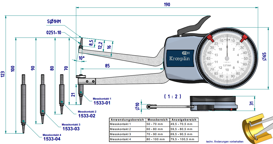 德國KROEPLIN指針式內徑卡規(guī)H2M50