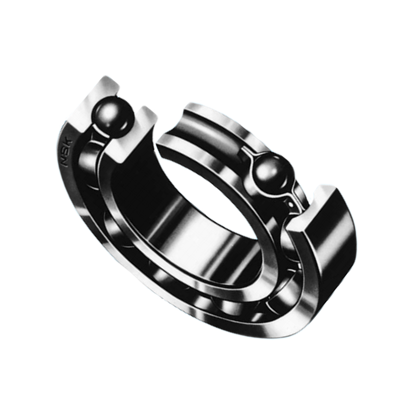 (1)滿球軸承,由于在內(nèi)圈及外圈上設(shè)計了填球口,可比深溝球軸承多裝球。因?yàn)橛刑钋蚩?,所以不適于軸向載荷大的用途。另外使用軸承時,盡可能將外圈的填球口位置只作為非載荷圈。保持架為沖壓保持架。